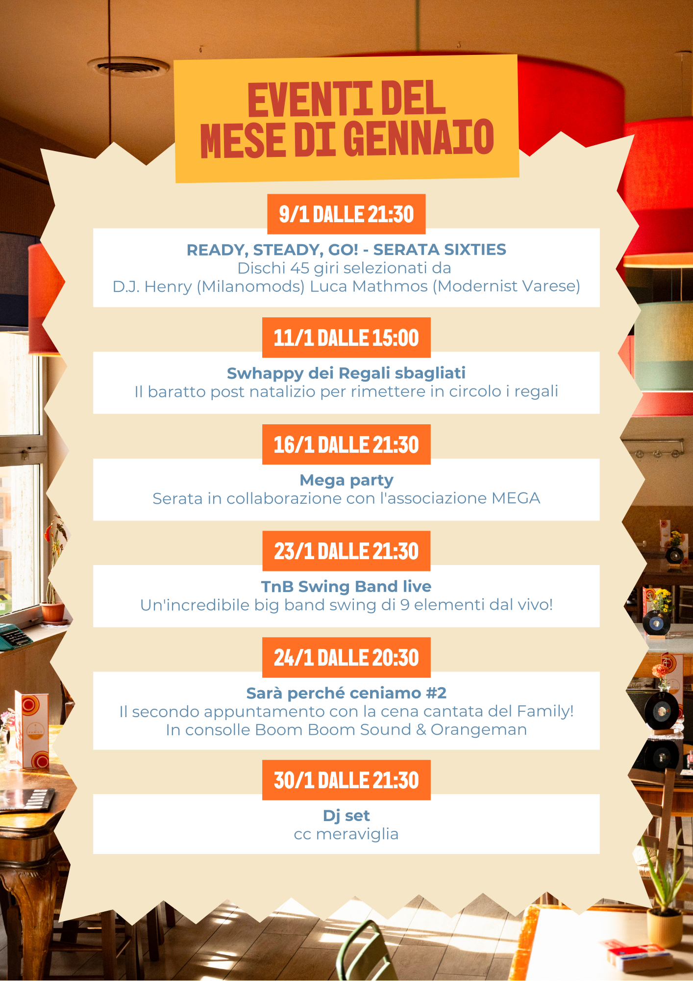 The Family è un circolo–osteria nato per far sentire chiunque a casa: un posto vissuto, caldo, conviviale, dove si mangia bene, si beve meglio